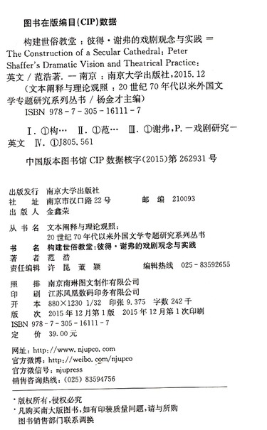构建世俗教堂--彼得·谢弗的戏剧观念与实践(英文版)/文本阐释与理论观照20世纪70年代以来外国文学专题研究系列丛书