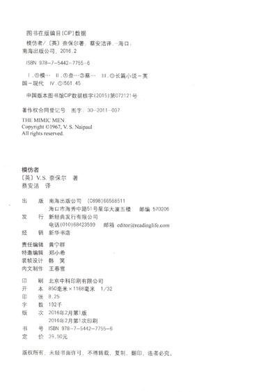 | 作者 | (英)V.S.奈保尔 |