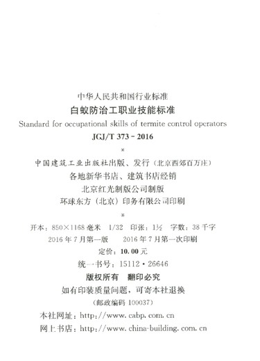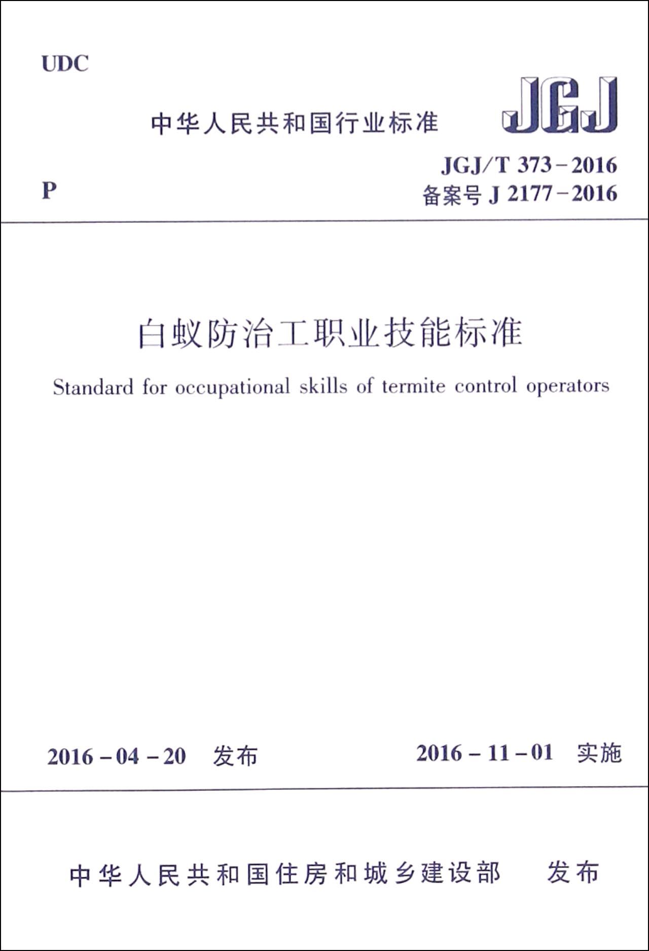 白蚁防治工职业技能标准(JGJ\T373-2016备案号J2177-2016)/中华人民共和国行业标准