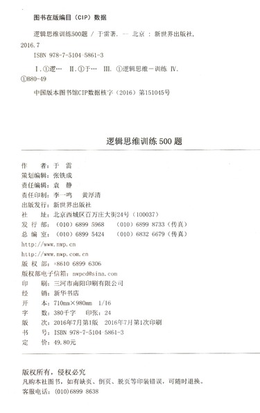 | CIP核字 | 2016151045 |