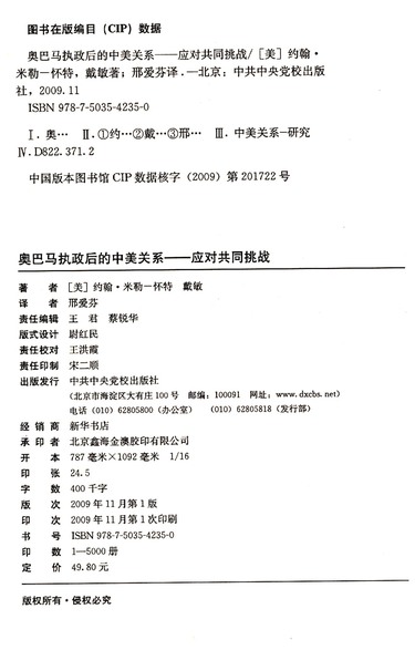 奥巴马执政后的中美关系应对共同挑战/美中伙伴关系系列丛书