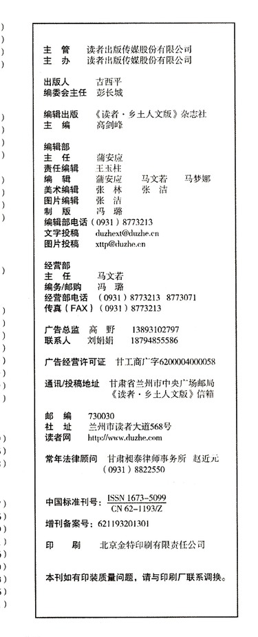 出版社 读者乡土人文版杂志社