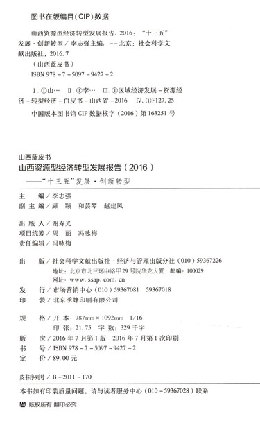 山西资源型经济转型发展报告(2016十三五发展创新转型)/山西蓝皮书