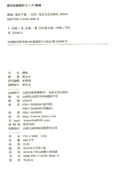 裸地/三晋百部长篇小说文库