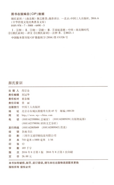 颜氏家训/中华传统文化经典普及文库