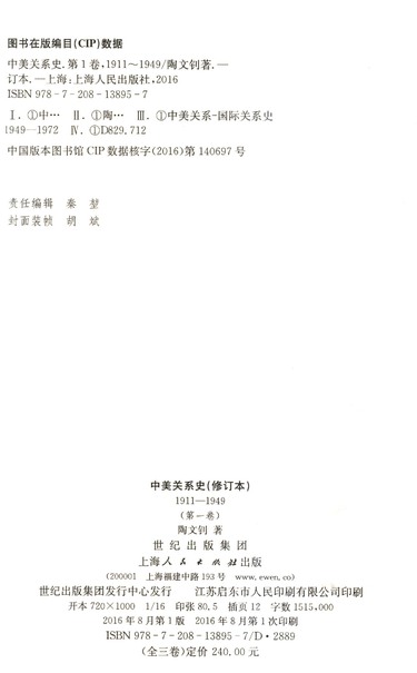 中美关系史(修订本共3册)