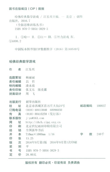 哈佛经典数学游戏/全脑思维训练丛书