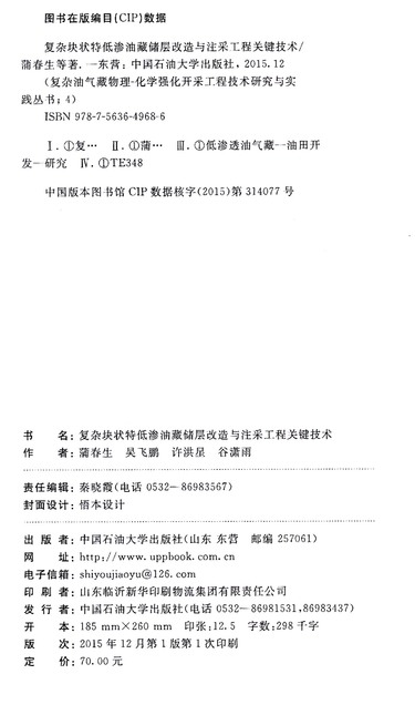 丛书名 复杂油气藏物理化学强化开采工程技术研究与实践丛书