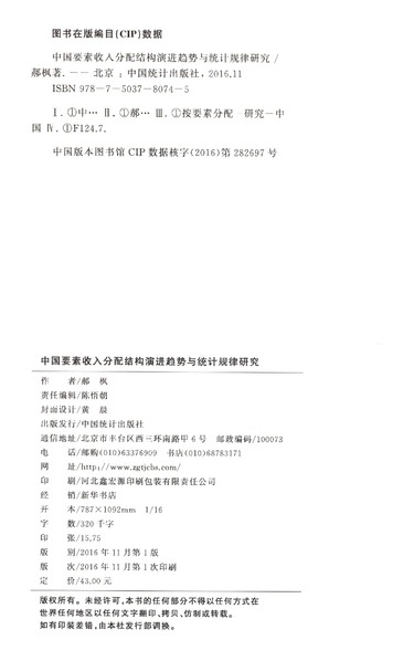 中国要素收入分配结构演进趋势与统计规律研究