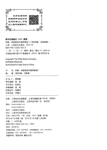 | 版权提供者 | 由美国威利斯音乐出版公司授权出版 |