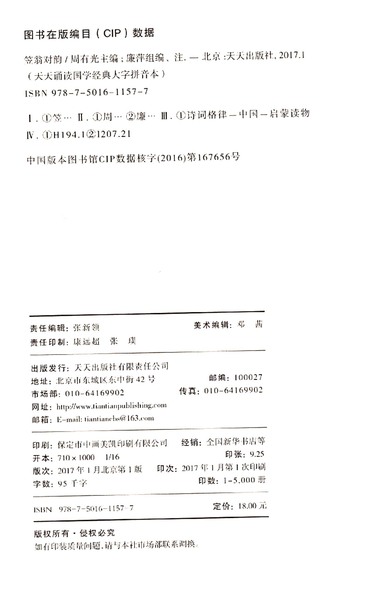 | CIP核字 | 2016167656 |