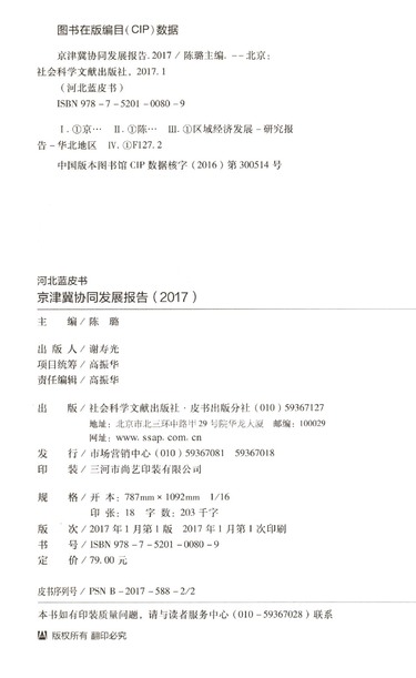 京津冀协同发展报告(2017)/河北蓝皮书