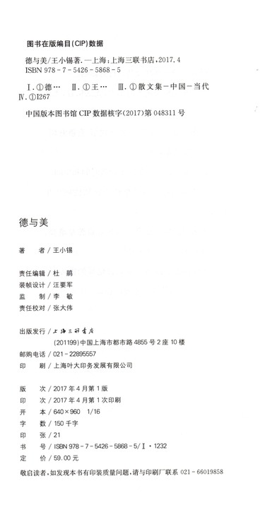 德与美(王小锡散文随笔集)
