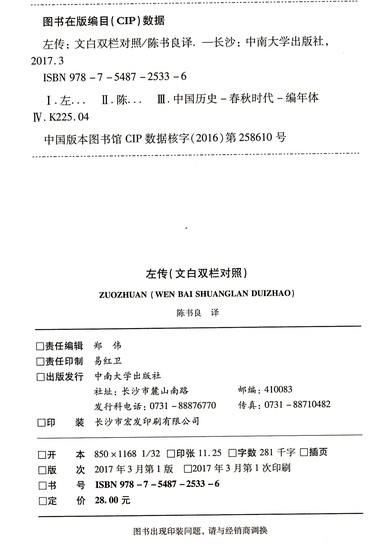 左传(文白双栏对照)/国学经典双栏对照丛书