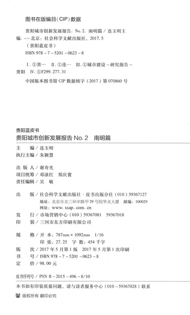贵阳城市创新发展报告(No.2南明篇2017版)/贵阳蓝皮书