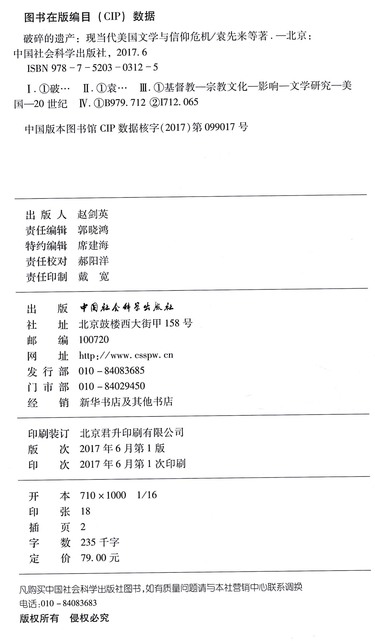 破碎的遗产--现当代美国文学与信仰危机