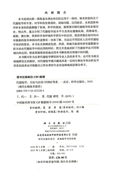 代谢组学--方法与应用/生命科学前沿及应用生物技术