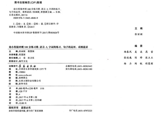 语言(2字词的练习句子的运用看图说话)/幼小衔接冲刺100分练习册