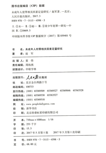未成年人犯罪相关因素定量研究(精)/人民日报学术文库