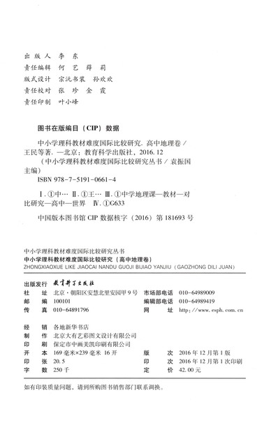 中小学理科教材难度国际比较研究(高中地理卷)/中小学理科教材难度国际比较研究丛书