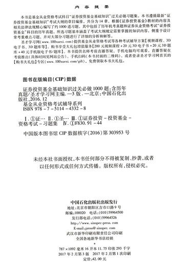 证券投资基金基础知识过关必做1000题(第3版)/2017年基金从业资格考试辅导系列
