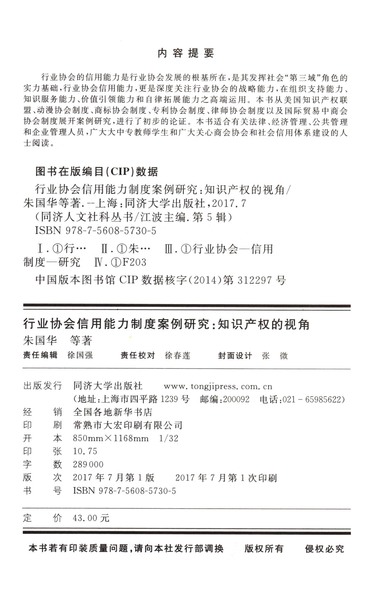 行业协会信用能力制度案例研究--知识产权的视角/同济人文社科丛书