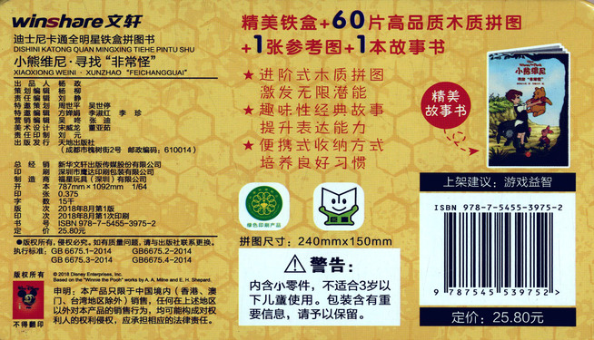 小熊维尼(寻找非常怪)/迪士尼卡通全明星铁盒拼图书