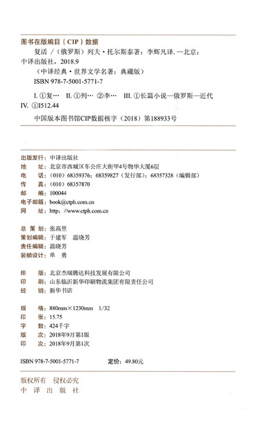 | CIP核字 | 2018188933 |