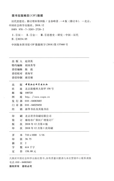 | CIP核字 | 2018137460 |