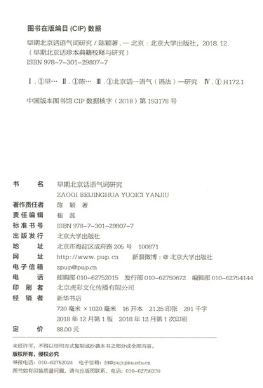 | 丛书名 | 早期北京话研究书系 |