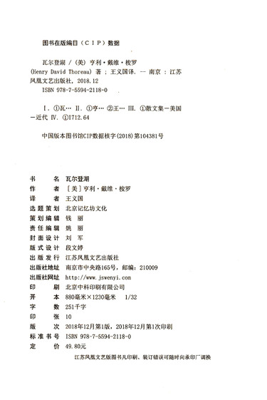 | 作者 | (美)亨利·戴维·梭罗 |