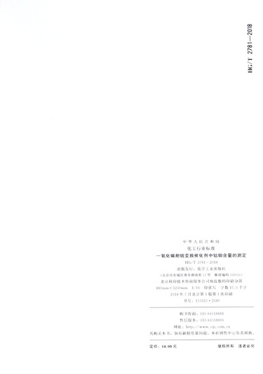 一氧化碳耐硫变换催化剂中钴钼含量的测定(HG\T2781-2018代替HG\T2781-2010)/中华人民共和国化工行业标准