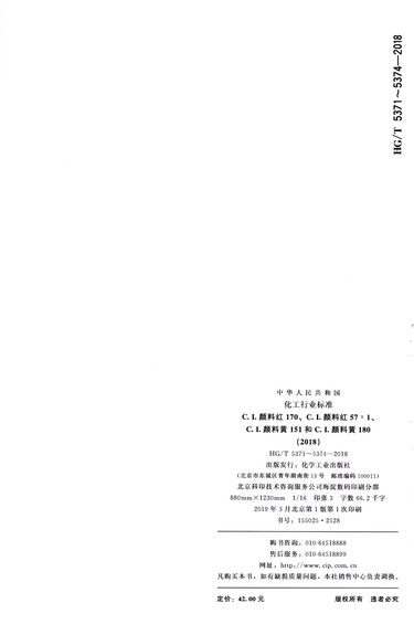 C.I.颜料红170\C.I.颜料红57:1\C.I.颜料黄151和C.I.颜料黄180(2018HG\T5371-5374-2018)/中华人民共和国化工行业标准