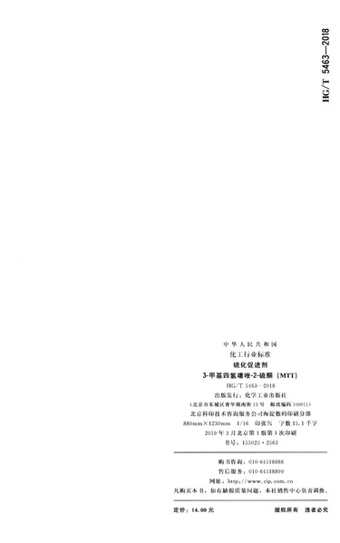 硫化促进剂3-甲基四氢噻唑-2-硫酮(MTT HG\T5463-2018)/中华人民共和国化工行业标准