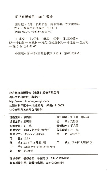 | 出版社 | 春风文艺出版社 |