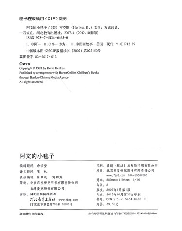 | 绘者 | 绘画:(美)凯文·亨克斯 |