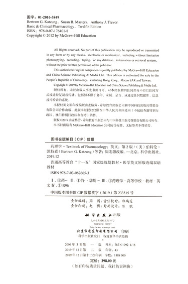 | 作者 | (美)Bertram G.Katzung//Susan B.Masters//Anthony J.Trevor |