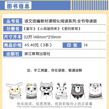 语文统编教材课程化阅读 六年级上(童年+爱的教育+小英雄雨来)全3册 塑封