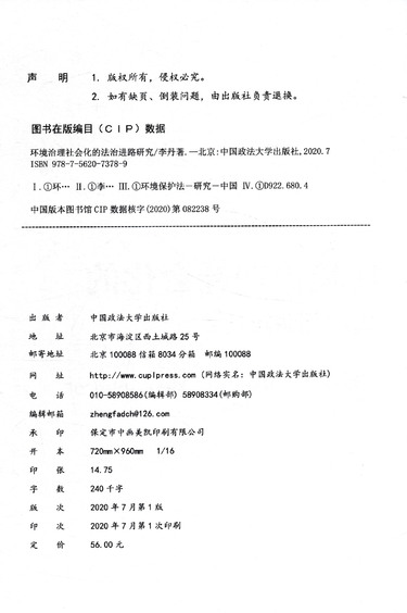 | 出版社 | 中国政法大学出版社 |