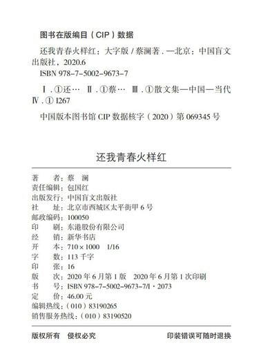 | 出版社 | 中国盲文出版社 |