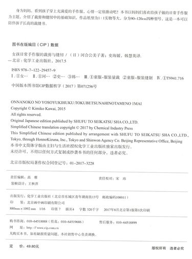 | 内容推荐 | 本书以妈妈们喜欢给孩子做的日常手作服为主题,介绍了裁剪和缝纫中的基础知识,作品纸型为1:1实物等大,分为90-120cm四种型号。 |