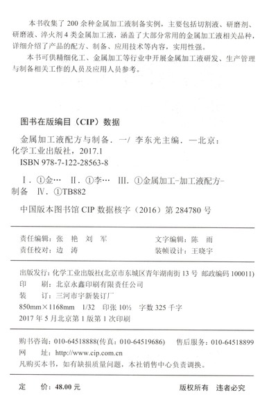 | 读者对象 | 本书适用于精细化工、金属加工等行业中开展金属加工液研发、生产管理与制备相关工作的人员及应用人员 |