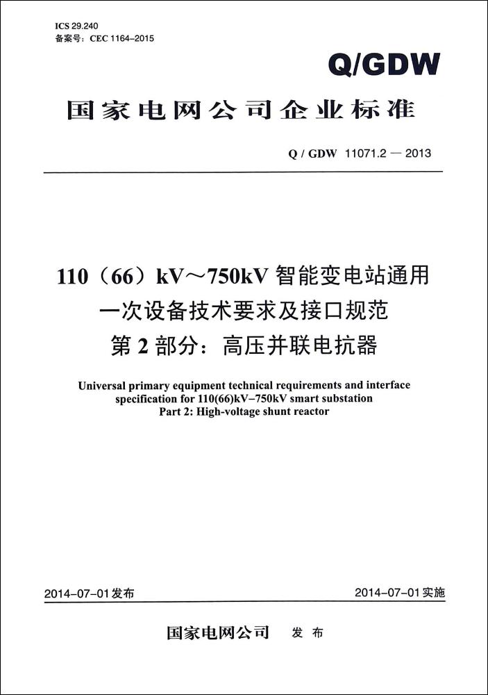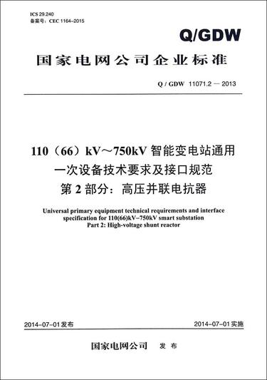 Q/GDW 11071.2-2013 110(66)KV-750KV 高压并联电抗器/智能变电站通用一次设备技术要求