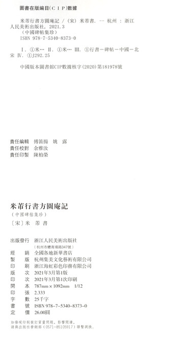 米芾行书方圆庵记/翰墨撷英中国碑帖集珍