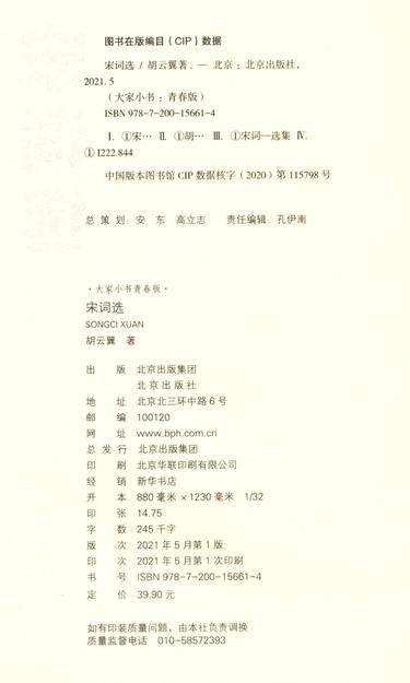 宋词选(青春版)/大家小书