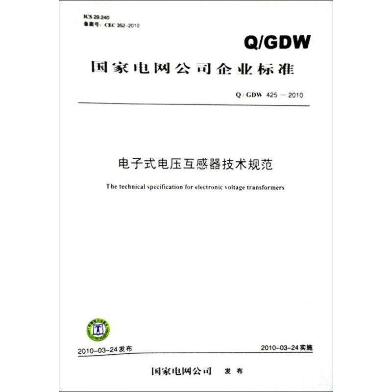 电子式电压互感器技术规范 Q/CDW 425-2010