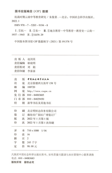 抗战时期云南中等教育研究