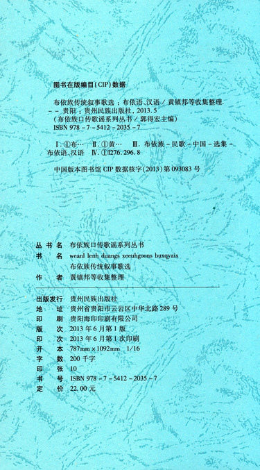 | 丛书名 | 布依族口传歌谣系列丛书 |