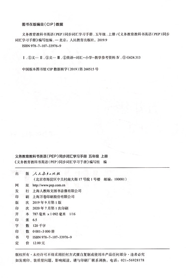 | 编者 | 义务教育教科书英语PEP同步词汇学习手册编写组 |