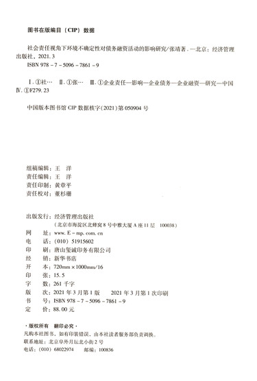 社会责任视角下环境不确定性对债务融资活动的影响研究/前沿学术经典管理类经管文库